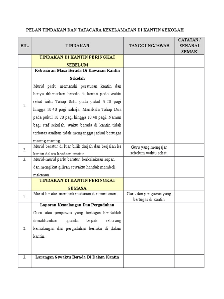 Pelan Tindakan Dan Tatacara Keselamatan Di Kantin Sekolah
