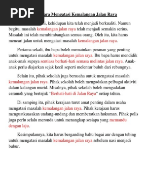 Karangan Langkah Langkah Mengurangkan Kemalangan Jalan Raya